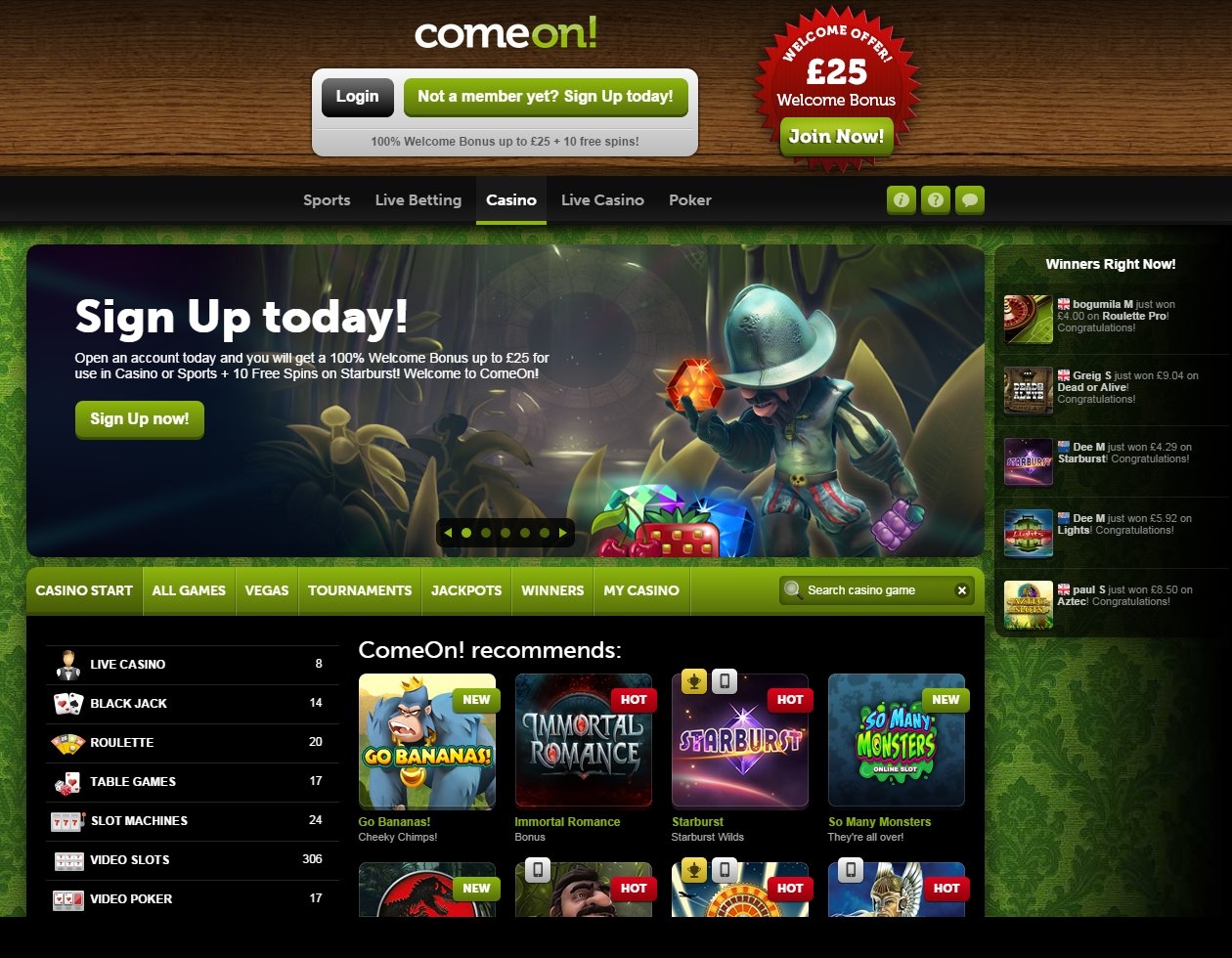 When you play at ComeOn Casino, we recommend you try and play one of their exciting slots. You can even get a nice looking ComeOn Casino bonus to play with. Simply use the ComeOn voucher code: MAXCASINO, and then you get 100 % on your deposit. Up to 25 GBP!