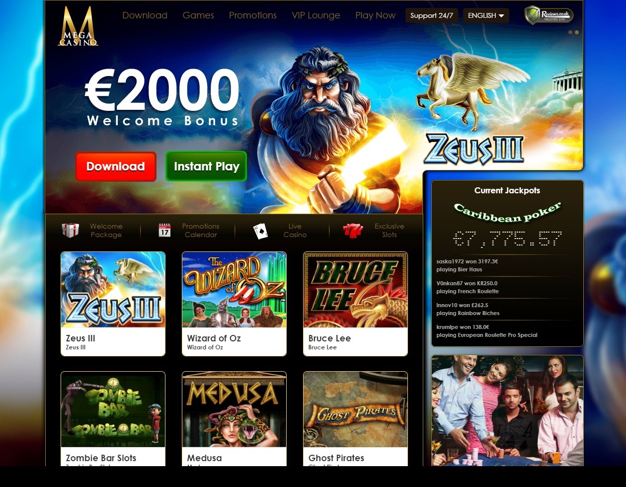 Play a variety of slots at MegaCasino and get a fantastic bonus.