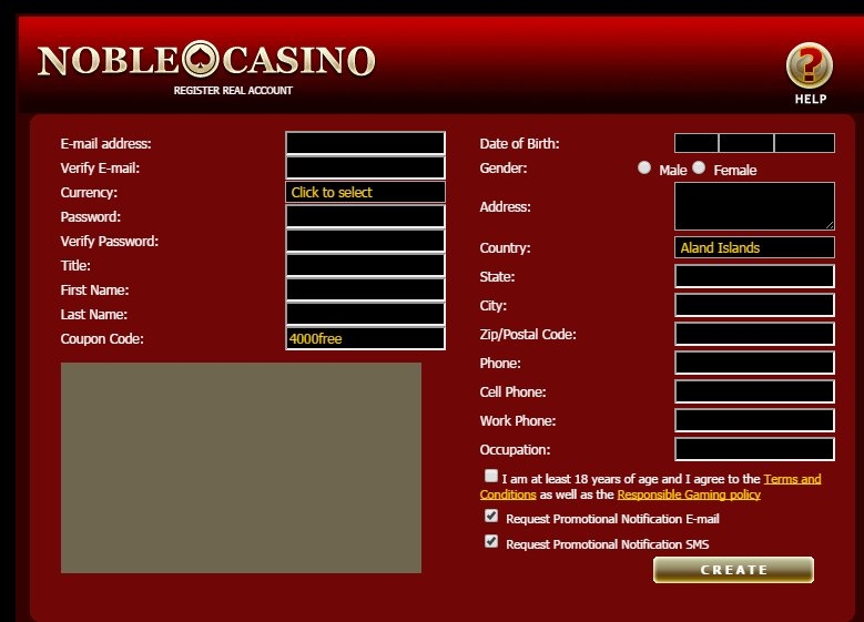 4000 GBP welcome bonus with our Noble Casino bonus code: 4000free, which must be entered to qualify for it.